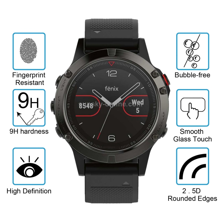 Película de Vidrio Templado Enkay Hat-Prince para Garmin Fenix 5 0.2mm 9H Dureza Borde Curvo