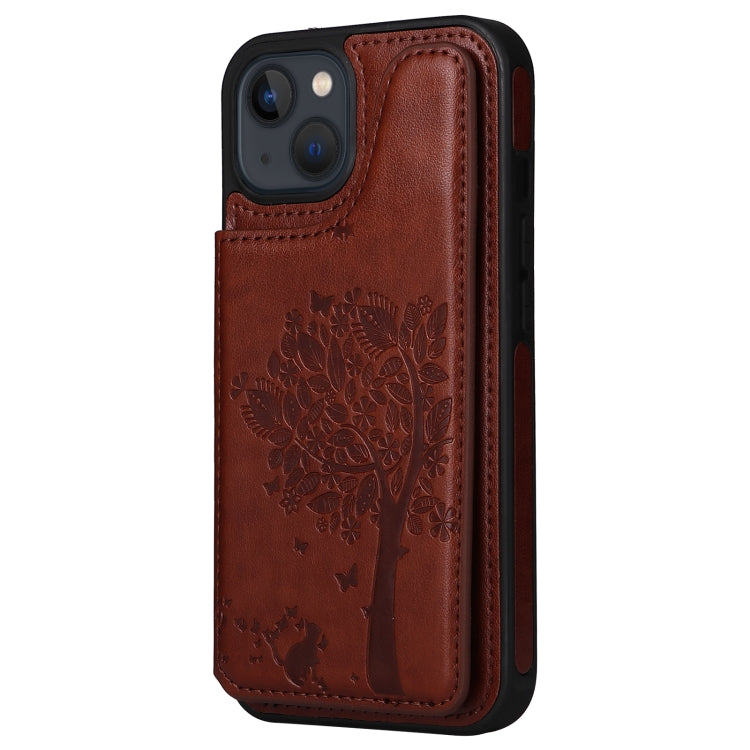 Estuche a Prueba de Choques iPhone 13 Mini Patrón Árbol de Gato (Marrón)