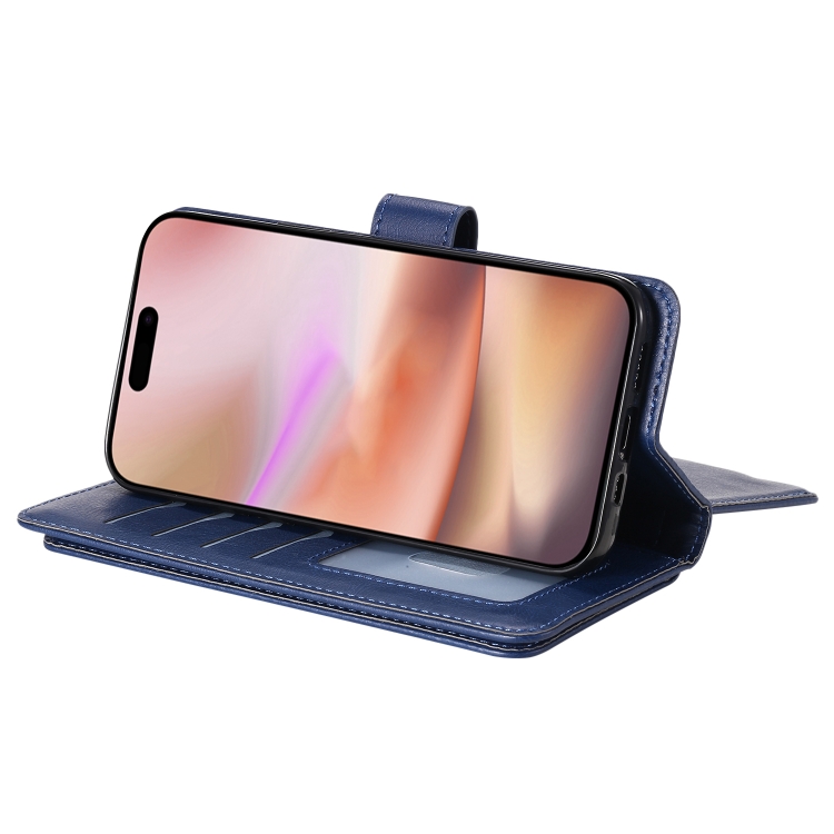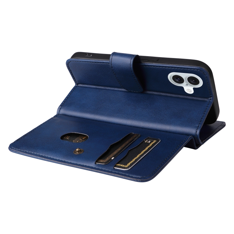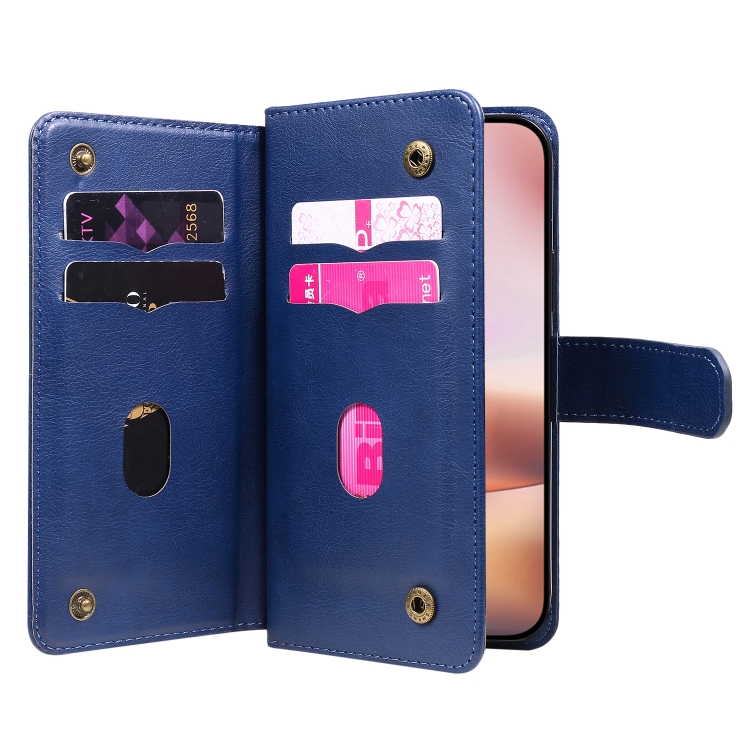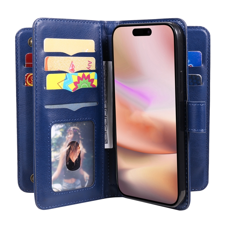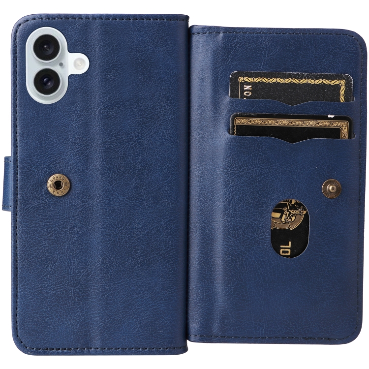 Estuche de Cuero para iPhone 16 Plus con Ranuras para Tarjetas y Billetera Multifunción (Azul Oscuro)
