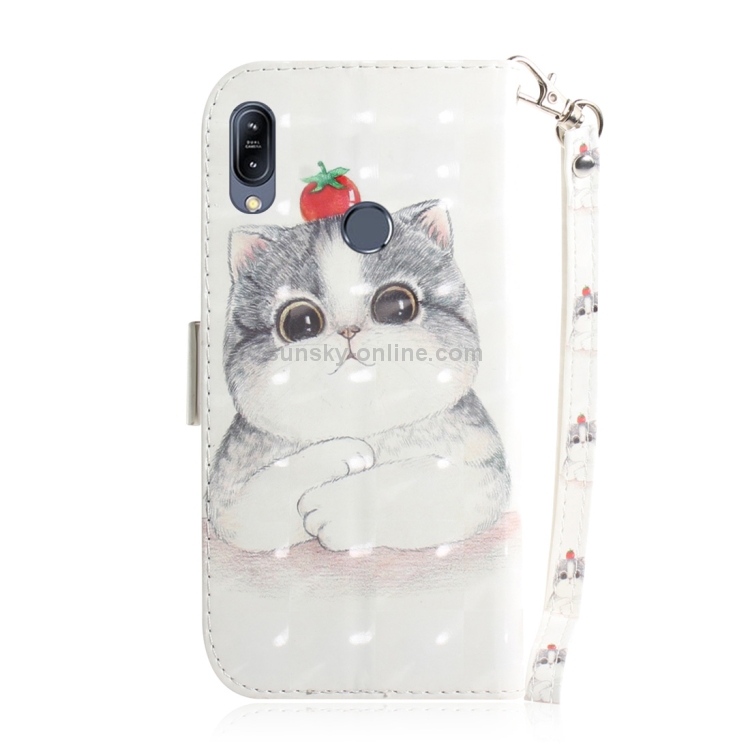 Estuche de Cuero con Tapa Horizontal para Asus Zenfone Max (M2) ZB633KL con Dibujo de Gato 3D, Soporte y Ranuras