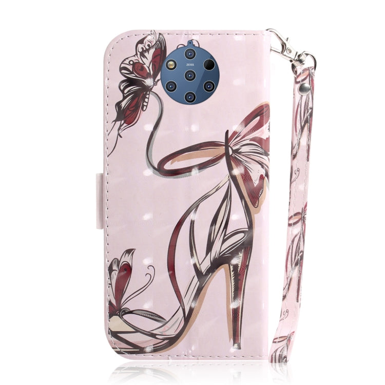 Estuche de Cuero con Tapa Horizontal y Soporte para Nokia 9 con Patrón 3D (Zapatos y Mariposa)