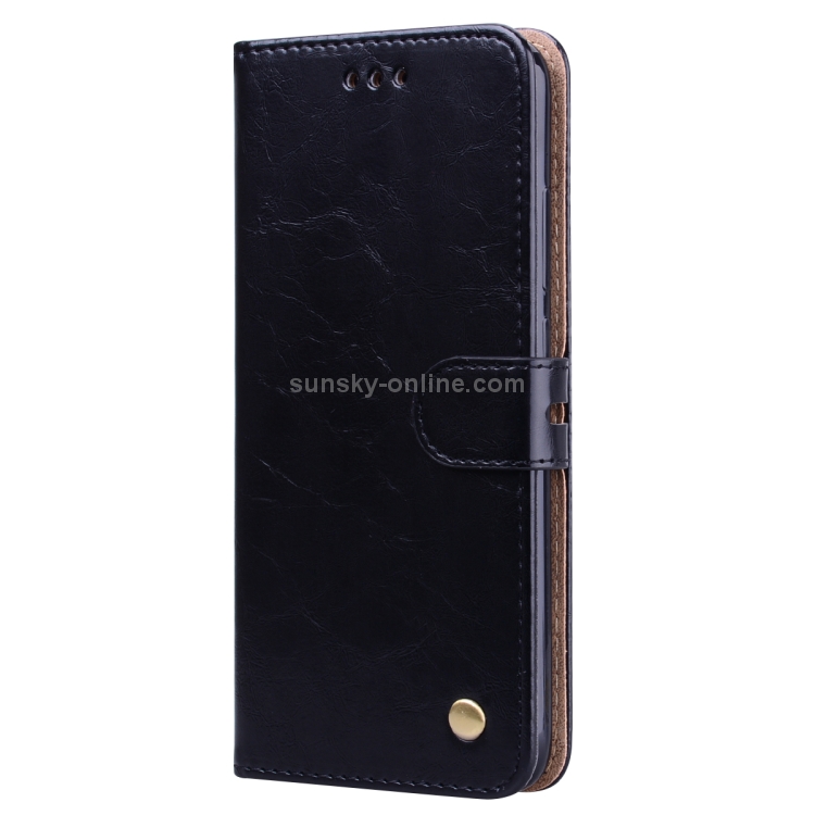 Estuche de Cuero con Tapa Horizontal con Textura de Cera de Aceite de Estilo Empresarial para Xiaomi Redmi Note7, con Soporte, Ranuras para Tarjetas y Billetera (Negro)
