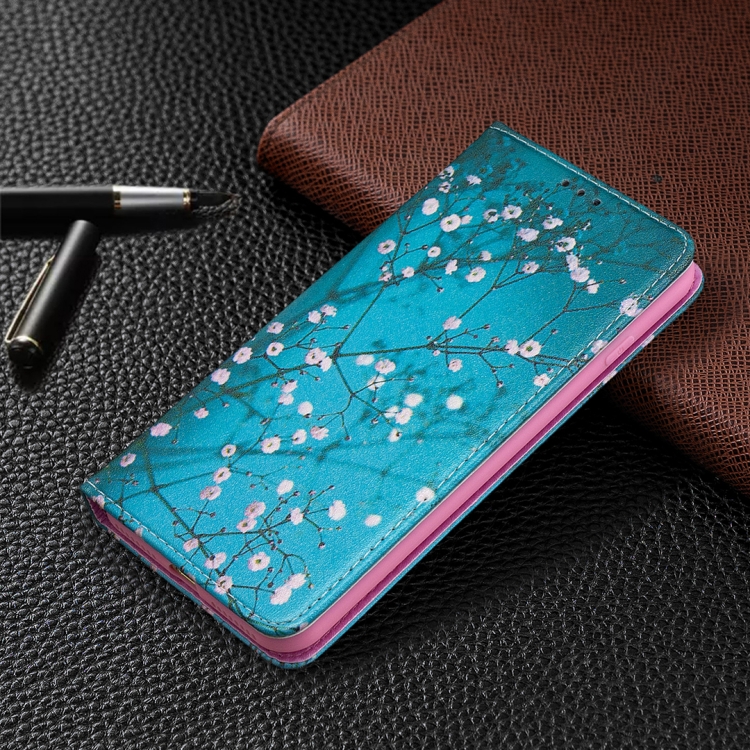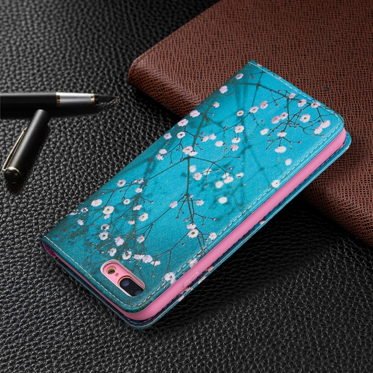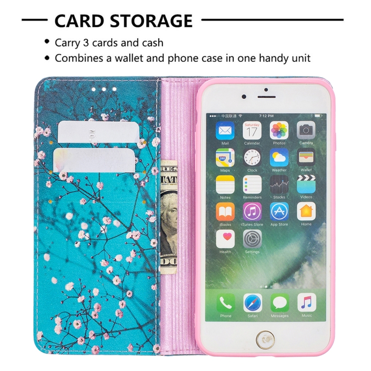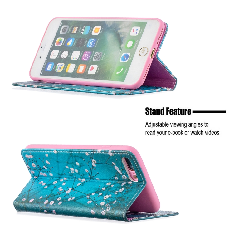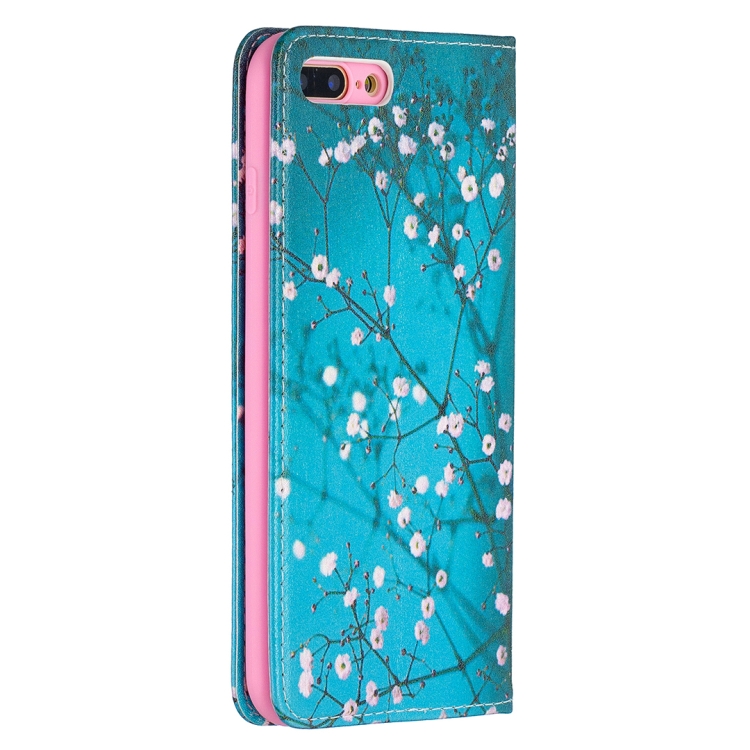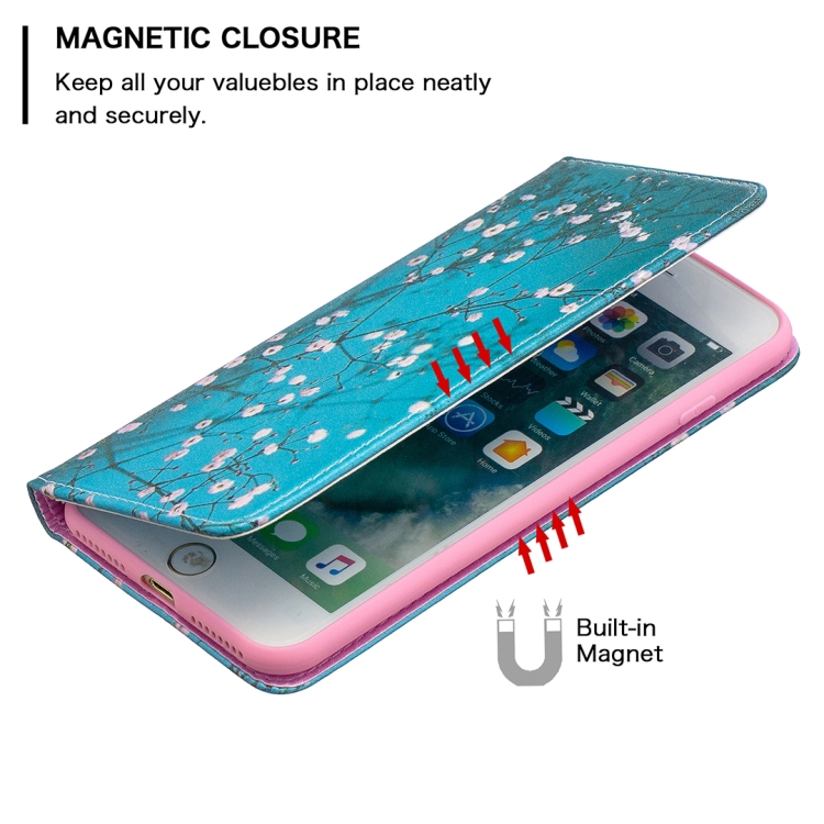 Estuche de Cuero de PU con Tapa Horizontal Magnética Invisible con Soporte y Ranuras para Tarjetas para iPhone 8 Plus y 7 Plus (Plum Blossom)