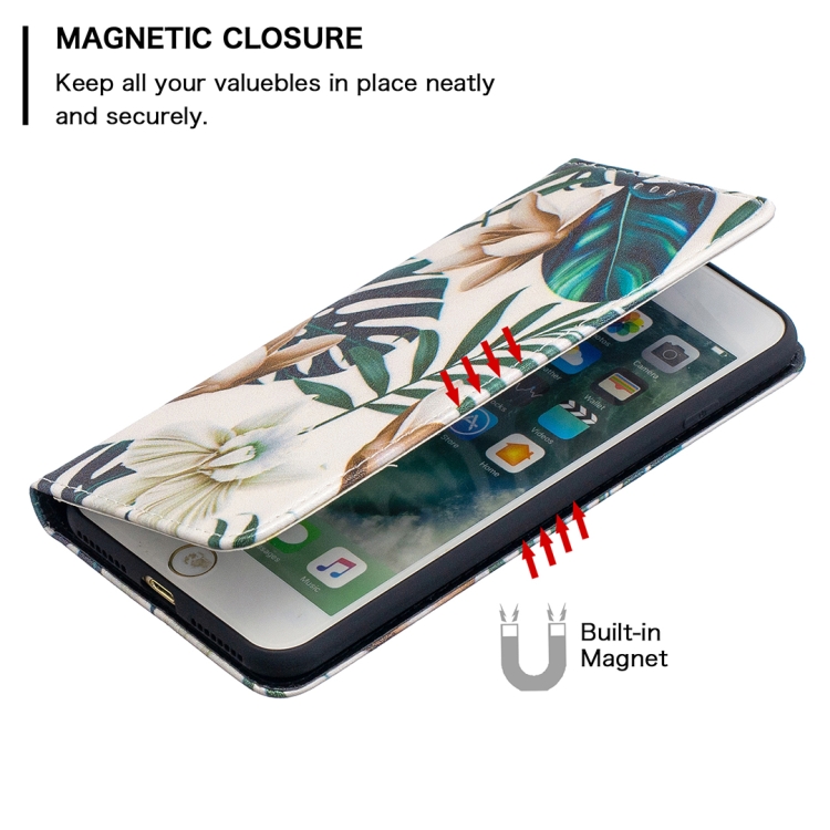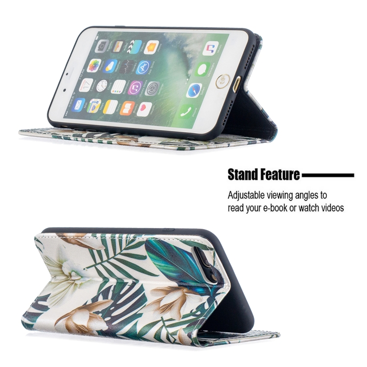 Estuche de Cuero de Pu iPhone 8 Plus y 7 Plus Tapa Horizontal Magnética Soporte Ranuras Tarjetas (Hojas Rojas)