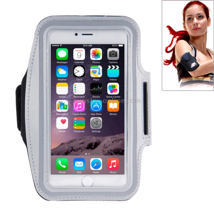Estuche Deportivo para Brazalete con Orificio para Auriculares y Bolsillo para Llaves para iPhone 6 Plus (Gris)