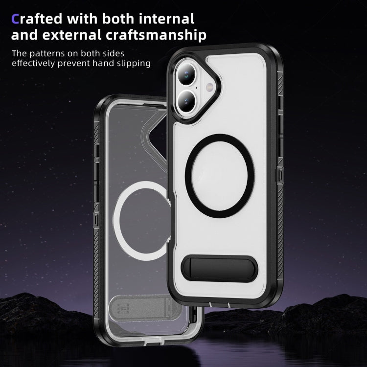 Estuche híbrido TPU y PC con soporte Magsafe para iPhone 16 (Negro Transparente)