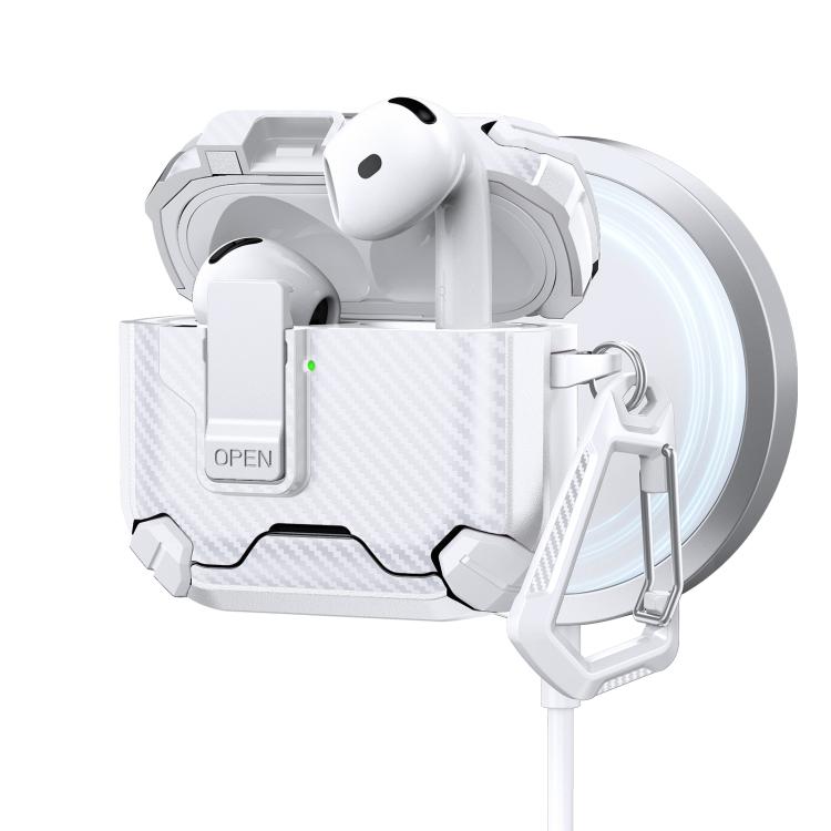 Estuche magnético MagSafe de dos colores con diseño de fibra de carbono para AirPods 4 (blanco)