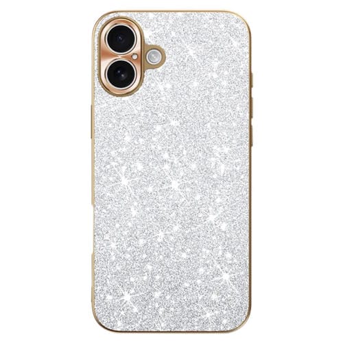 Estuche para Teléfono iPhone 16 con Anillo de Lente Textura Cd Diamante Estrella (Plateado)