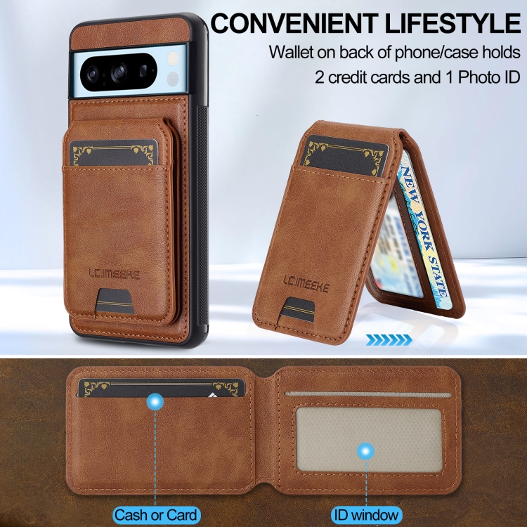 Estuche para Teléfono Lc.Imeeke L3 Series con Funda Tarjeta Rfid Desmontable y Magsafe para Google Pixel 8 Pro (Marrón)