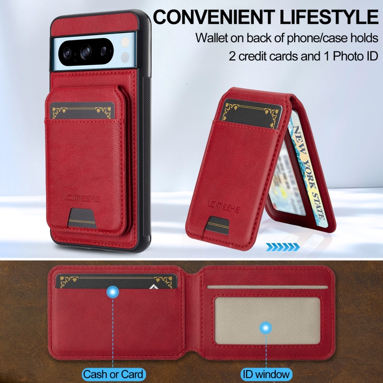 Estuche para Teléfono Lc.Imeeke L3 Series con Funda Tarjeta Rfid Desmontable y Magsafe para Google Pixel 8 Pro (Rojo)