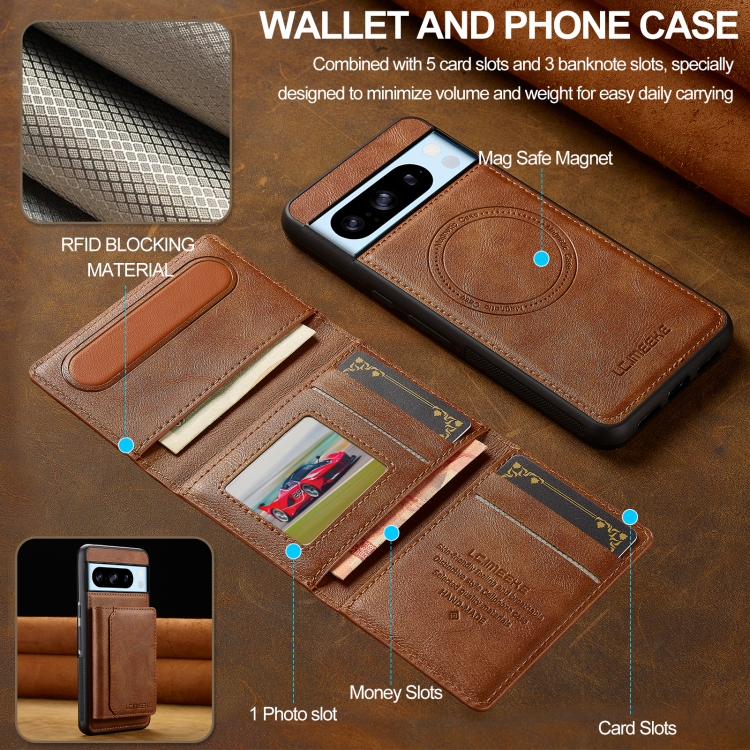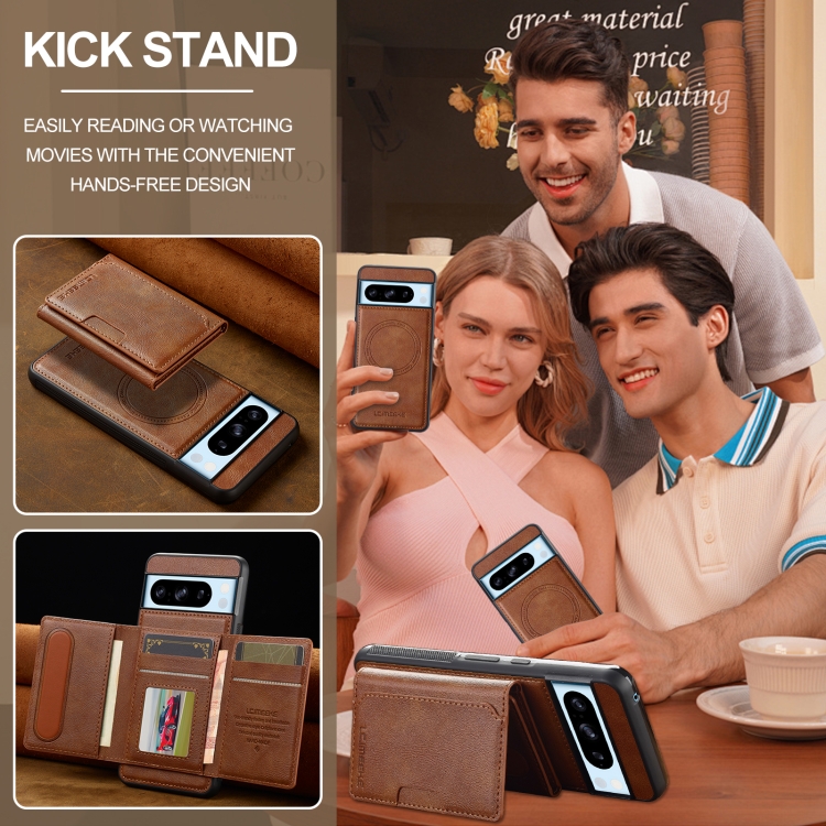 Estuche para Teléfono Lc.Imeeke L5 Series con Funda para Tarjeta Rfid Desmontable y Magsafe para Google Pixel 8 Pro (Marrón)