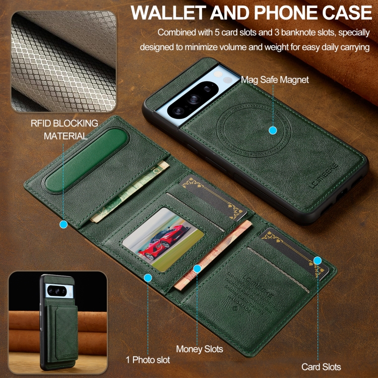 Estuche para Teléfono Lc.Imeeke L5 Series con Funda Tarjeta Rfid Desmontable y Magsafe para Google Pixel 8 Pro (Verde)