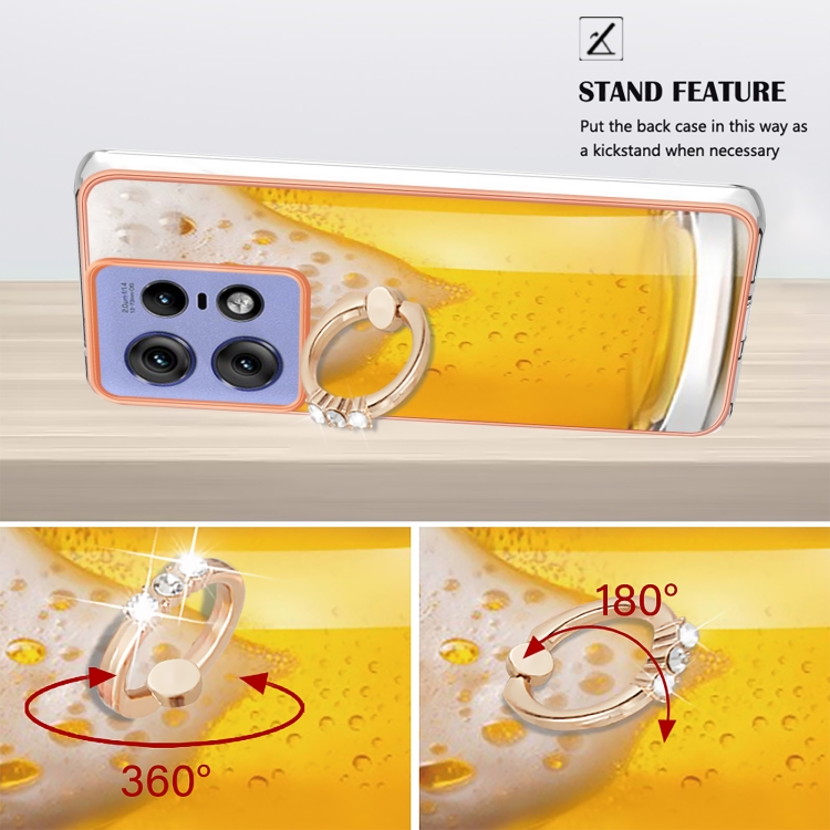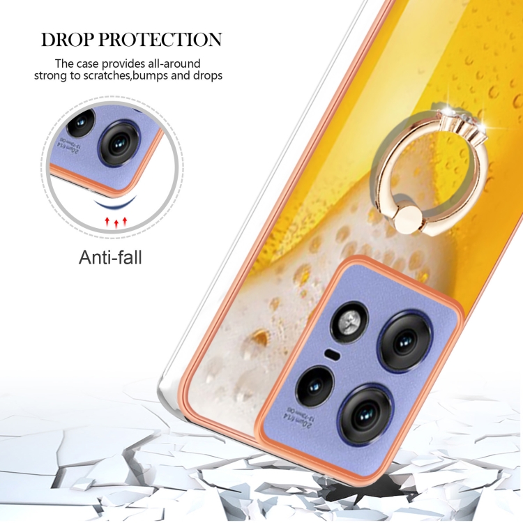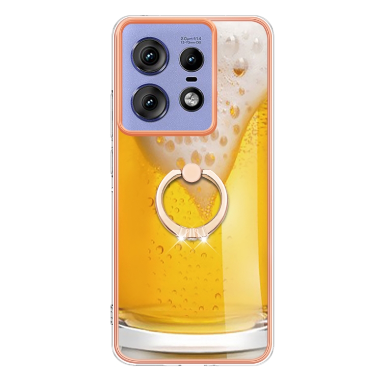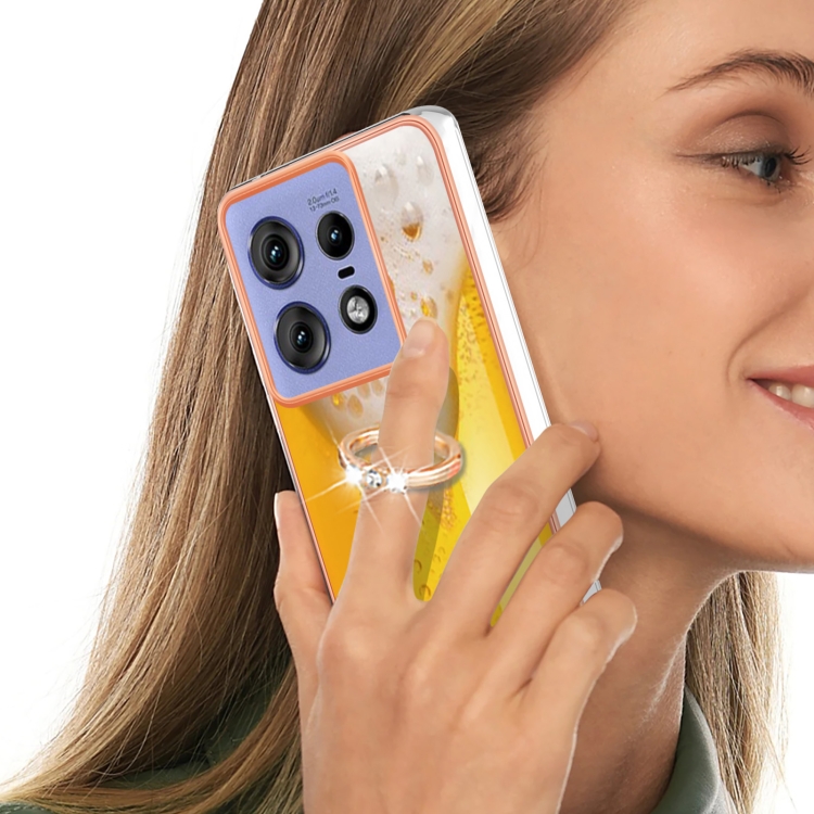 Estuche para Teléfono Motorola Edge 50 Pro con Galvanoplastia IMD Doble Cara y Soporte para Anillo (Cerveza de Barril)