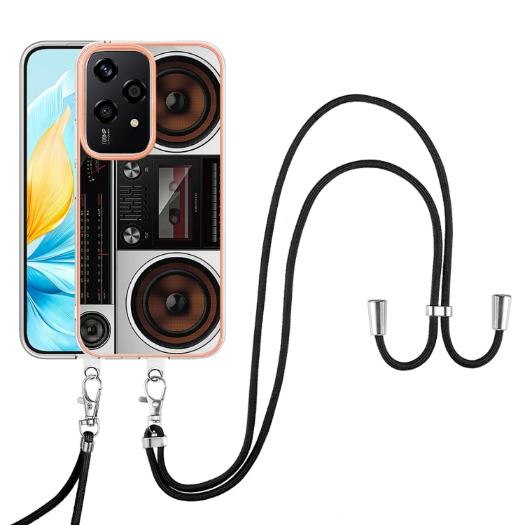 Estuche para Teléfono Honor 200 Lite con IMD Doble Cara, Galvanoplastia Global y Cordón (Radio Retro)