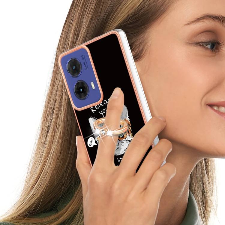Estuche para Teléfono Motorola Moto G85 con Imd Doble Cara Galvanizada y Soporte para Anillo (Crecimiento Natural)
