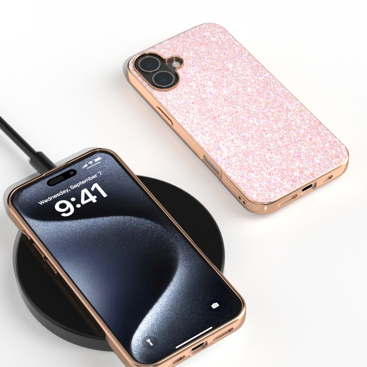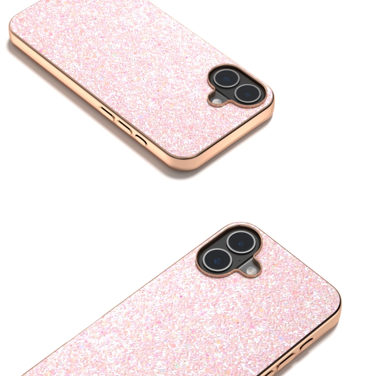 Estuche para Teléfono iPhone 16 Marco Galvanizado y Purpurina de Colores (Rosa)