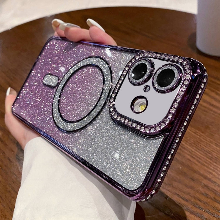 Estuche para Teléfono Magsafe Chapado Brillo Degradado Diamantes iPhone 16 (Morado)
