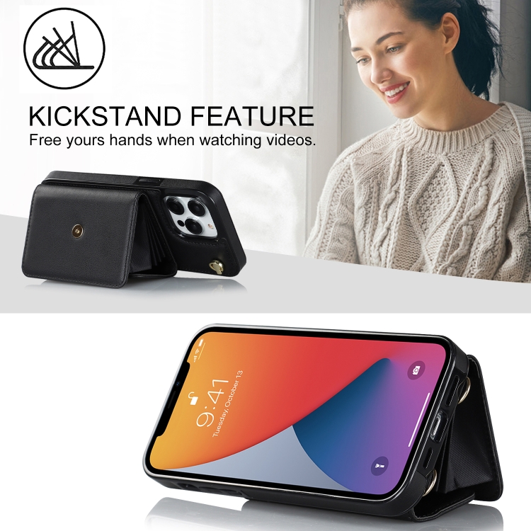 Estuche para Teléfono iPhone 12 Pro Max Ranura para Tarjeta Rfid Cordón Largo (Negro)