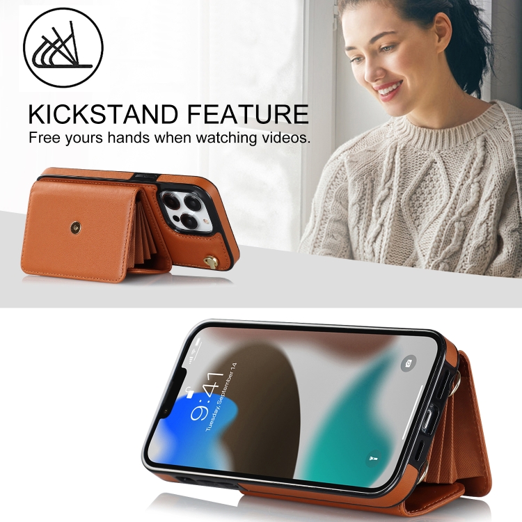 Estuche para Teléfono iPhone 13 Pro Max Ranura para Tarjeta Rfid Cordón Largo (Marrón)