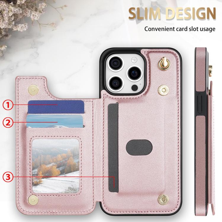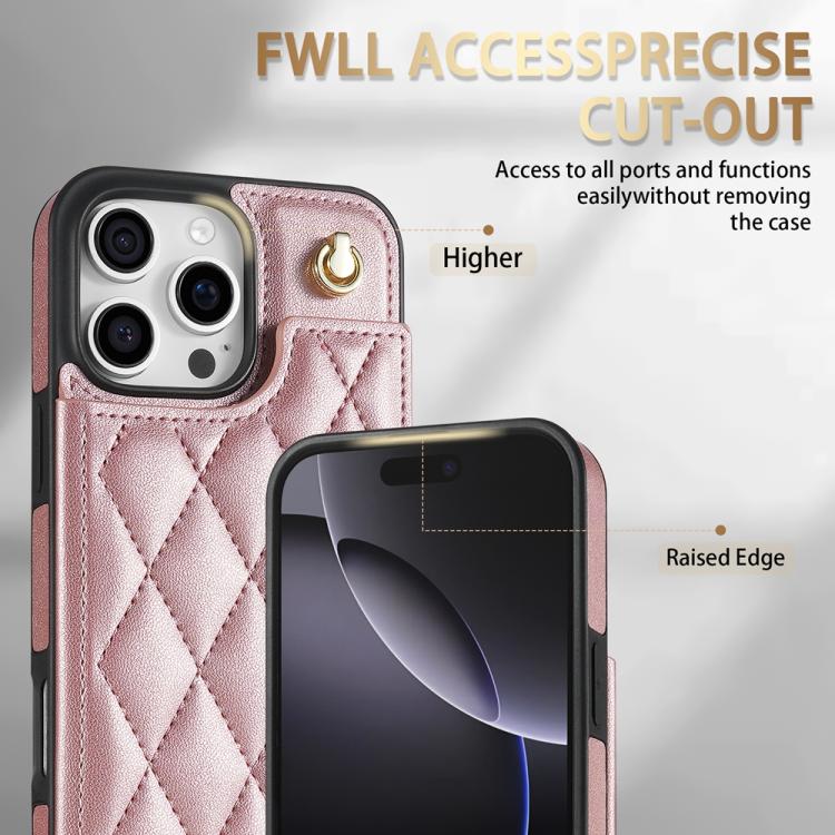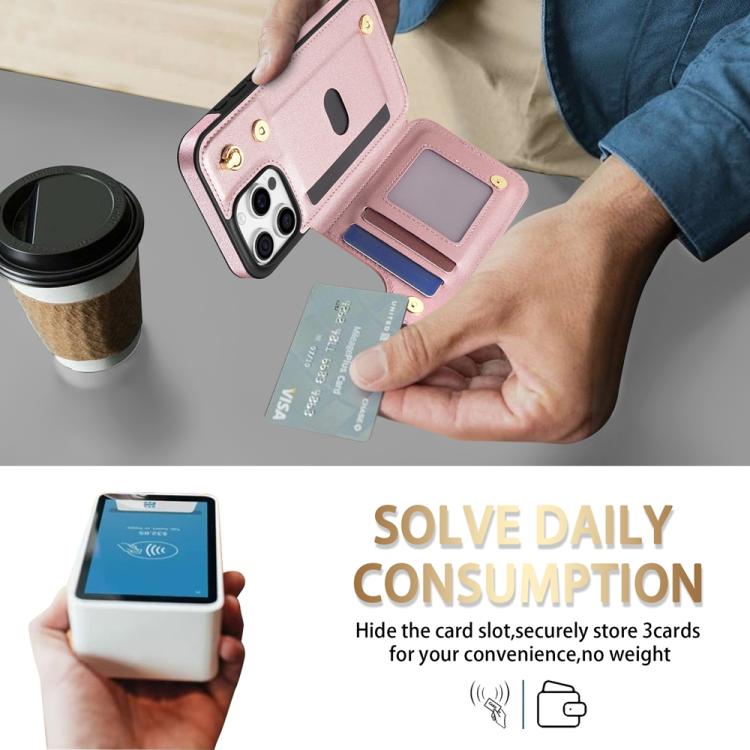 Estuche para Teléfono iPhone 11 Pro Ranuras para Tarjetas Hebilla Doble Rombal Cordón (Oro Rosa)