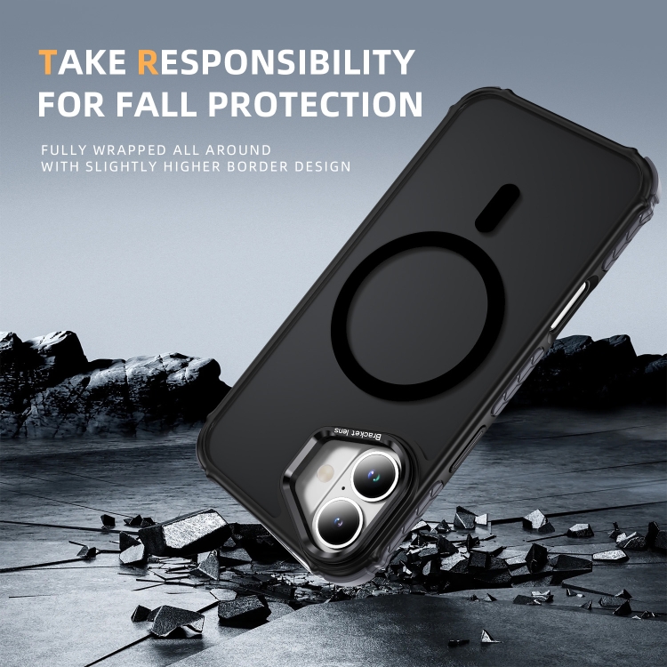 Estuche para Teléfono iPhone 16 Plus Soporte Lentes Magsafe Tacto de Piel (Negro)
