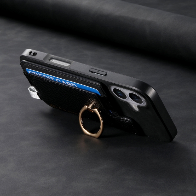 Estuche para Teléfono Cuero Magsafe Cross con Tarjetero y Anillo para iPhone 16 (Negro)