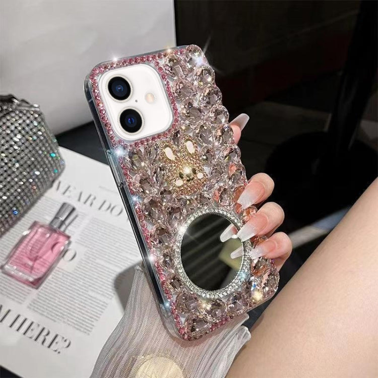 Estuche para Teléfono PC Hecho a Mano Forma de Conejito con Espejo para iPhone 16 (Rosa)