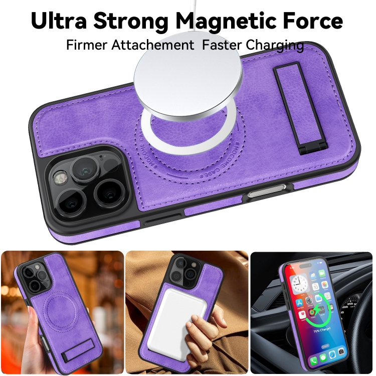 Estuche para Teléfono PU con Soporte Multifunción Magsafe iPhone 16 (Taro Morado)