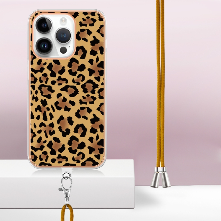 Estuche para Teléfono Imd Doble Cara con Galvanoplastia y Cordón para iPhone 16 Pro Max (Leopardo)