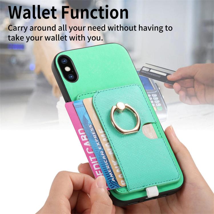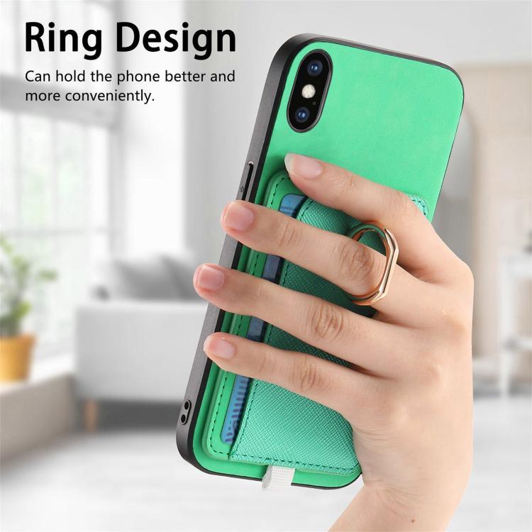 Estuche para Teléfono Magsafe con Inserción Lateral de Tarjeta y Anillo de Cuero con Cruz Retro para iPhone X/Xs (Verde)