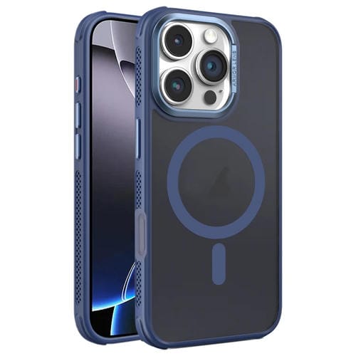 Estuche para Teléfono Magsafe con Marco de Lente de Metal Esmerilado y Sensación de Piel con Enfriamiento Lateral de Hardware para iPhone 16 Pro Max (Azul)