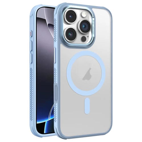 Estuche para Teléfono Magsafe iPhone 16 Pro Max Marco Metal Esmerilado Piel Enfriamiento (Azul Cielo)