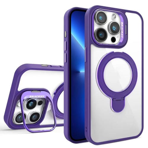 Estuche para Teléfono Magsafe con Soporte de Anillo y Protección de Lente para iPhone 13 Pro Max (Morado Oscuro)