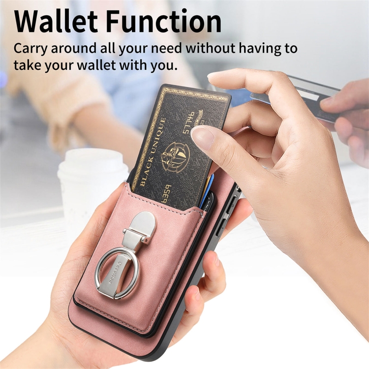 Funda Retro Plegable con Anillo y Tarjetero Magsafe para iPhone 16 Pro (Rosa)