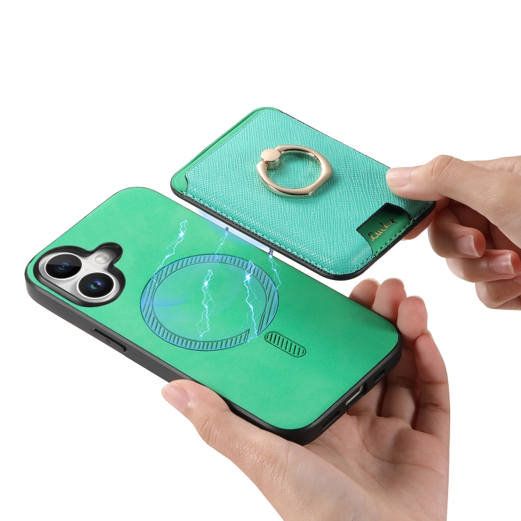 Estuche para Teléfono Magsafe con Tarjetero de Cuero Estilo Retro Cruzado para iPhone 16 (Verde)