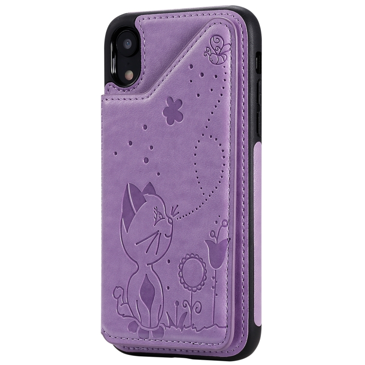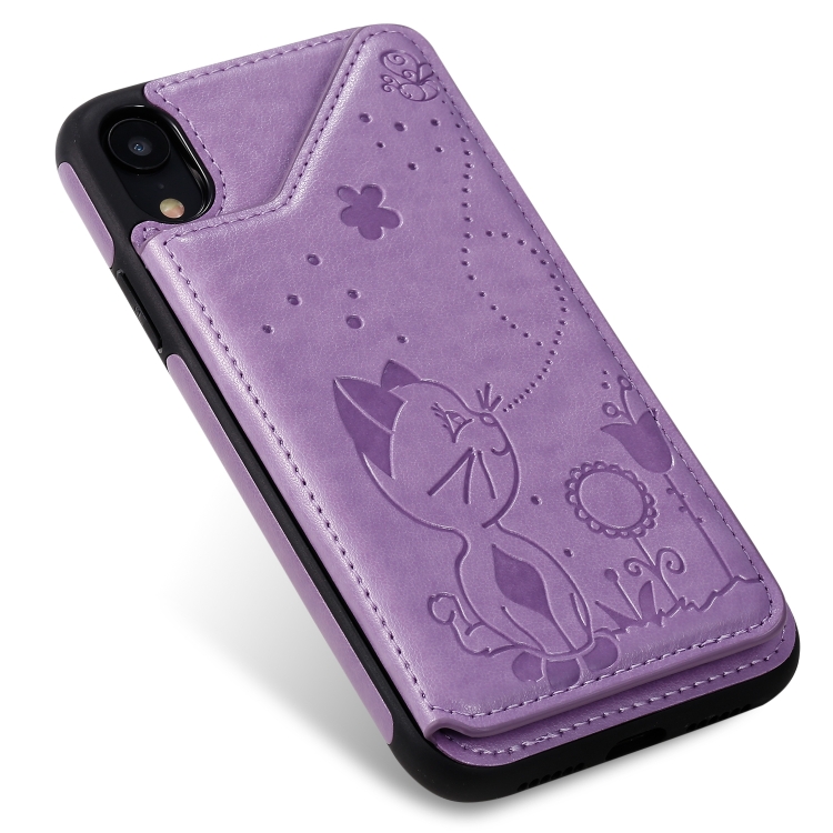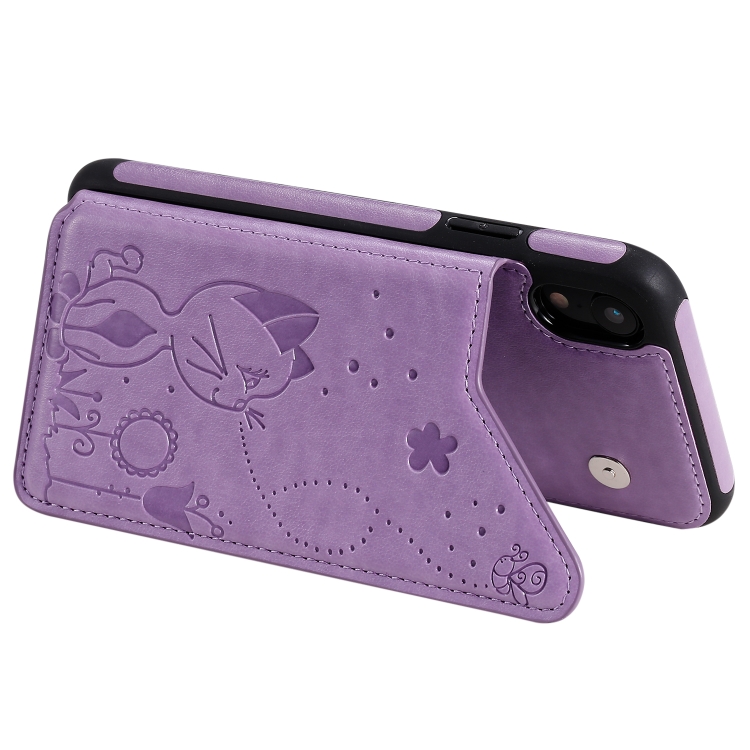 Estuche Protector iPhone Xr con Patrón de Abeja y Gato Ranuras y Marco (Púrpura)