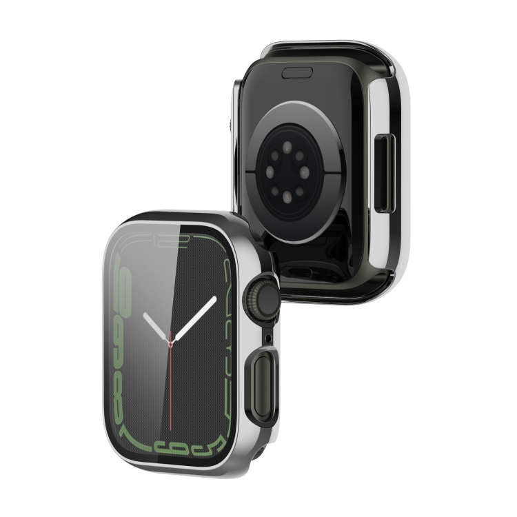 Estuche Protector PC Galvanoplastia con Vidrio Templado para Apple Watch Series 8/7 45mm (Plata)
