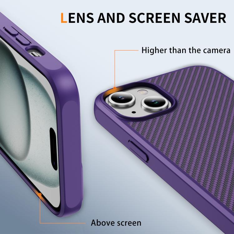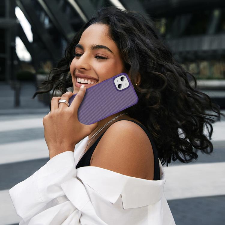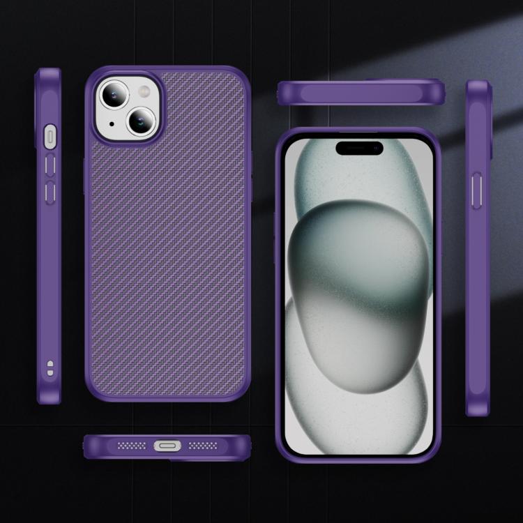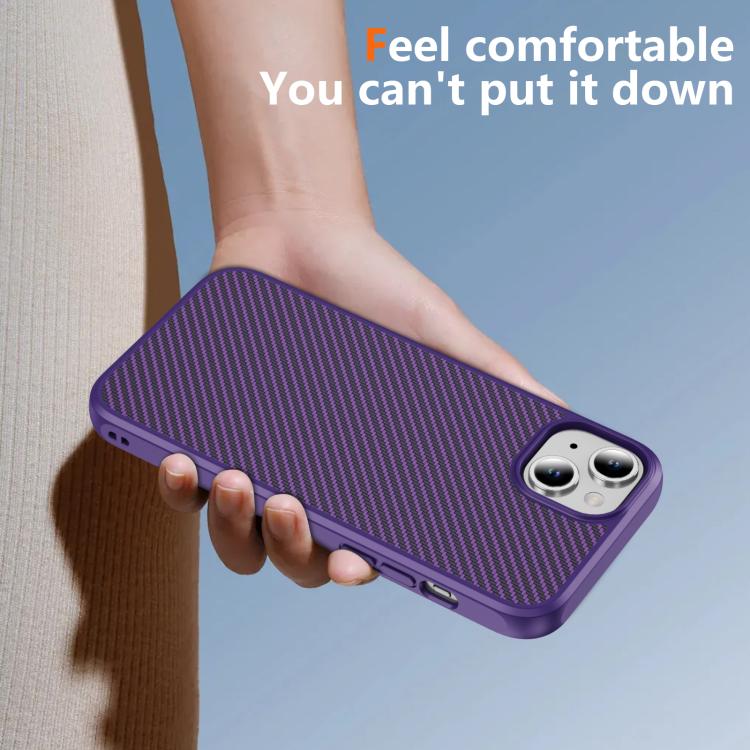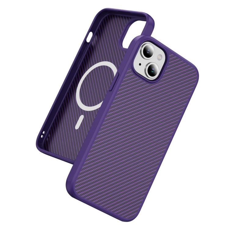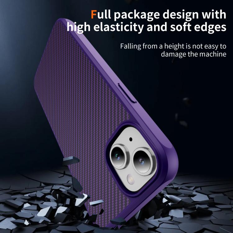 For iPhone 15 Carbon Fiber Texture Skin-feel MagSafe Phone Case(Purple)