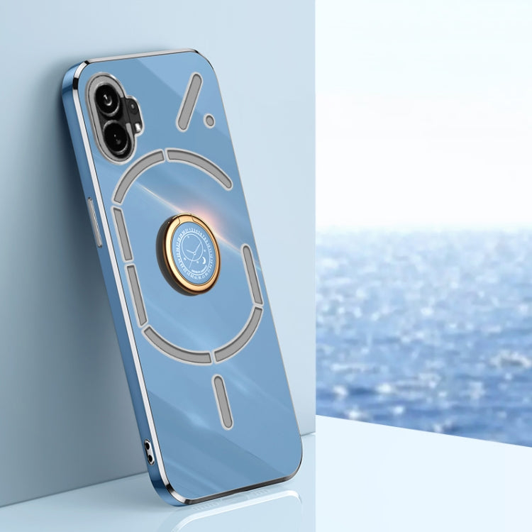 Funda TPU Xinli Straight Edge 6D Electroplate para Nothing Phone 1 con Soporte para Anillo (Azul Celestial)