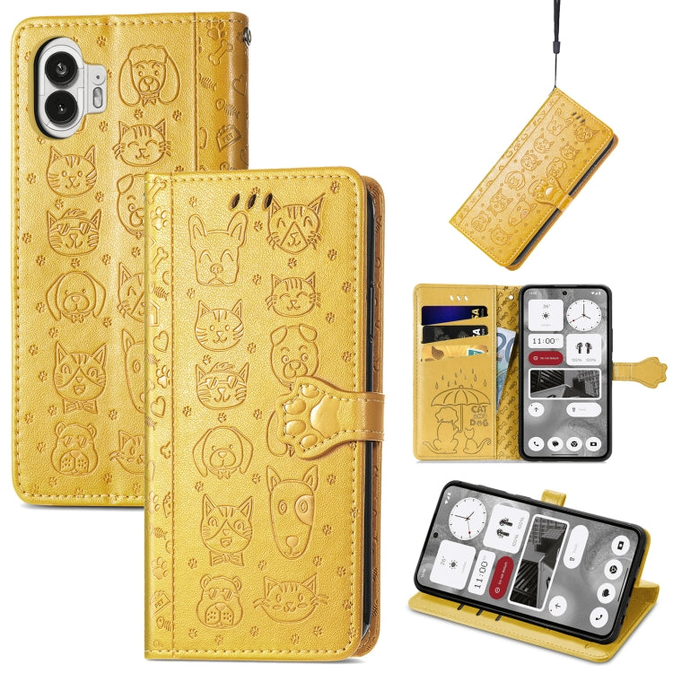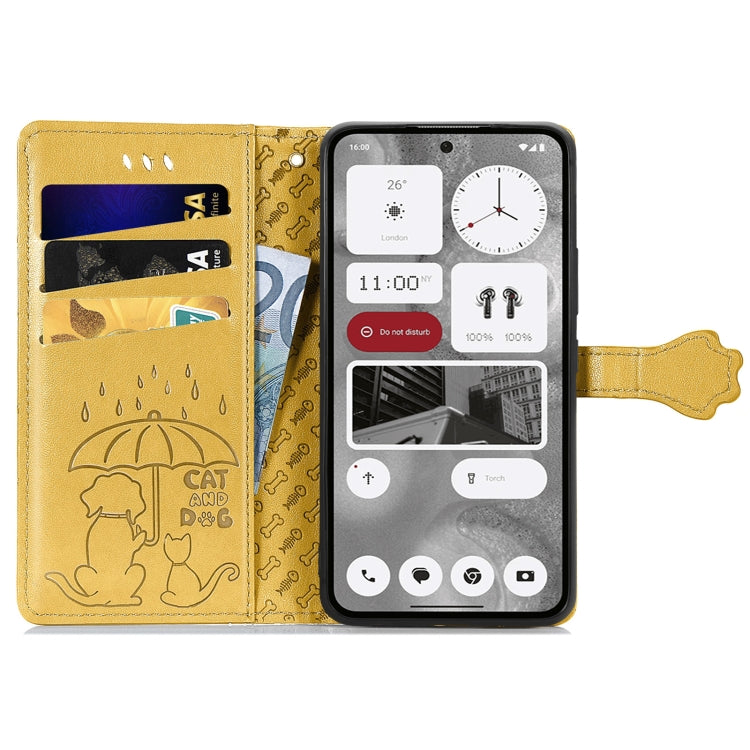 Estuche de Cuero For Nothing Phone 2 CAT And Dog en Relieve (Amarillo)