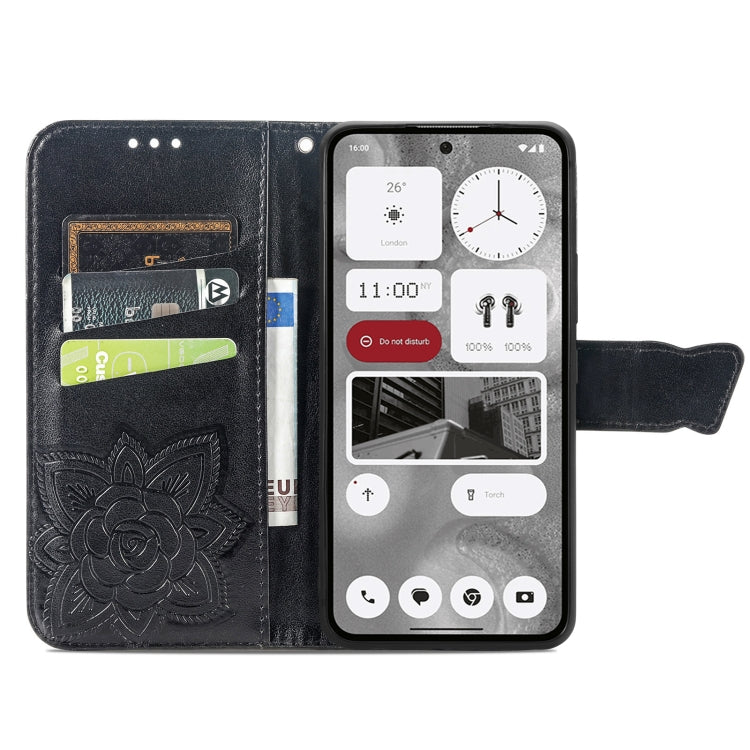 Estuche de Cuero For Nothing Phone 2 con Tapa Horizontal y Relieve Flor de Mariposa (Negro)