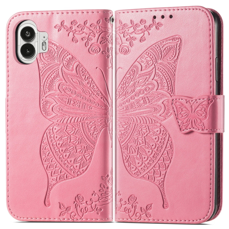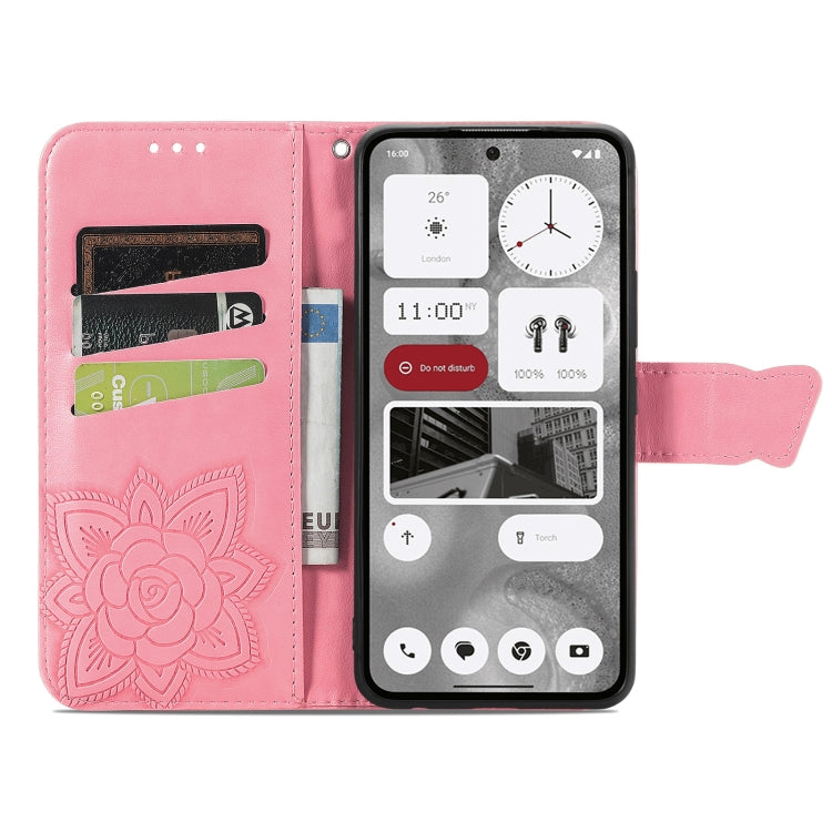 Estuche de Cuero For Nothing Phone 2 con Tapa Horizontal y Relieve Flor de Mariposa (Rosa)
