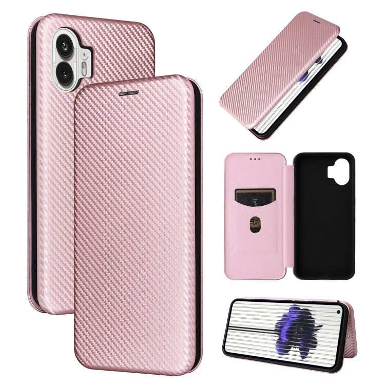 For Nothing Phone 2 Carbon Fiber Texture Flip Leather Case Cover for Phone (Pink)
