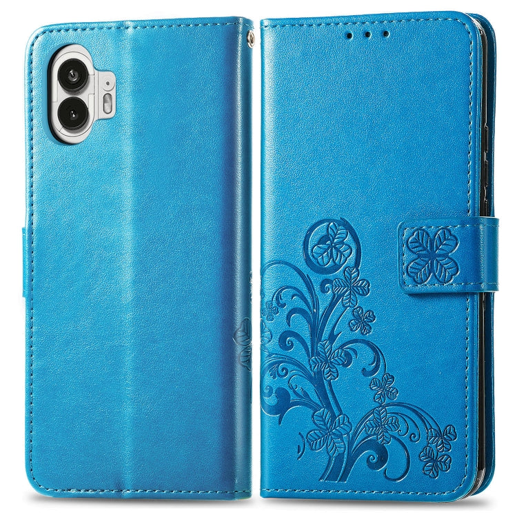 Funda para Nothing Phone 2 de Cuero con Hebilla en Relieve y Cierre de Cuatro Hojas (Azul)