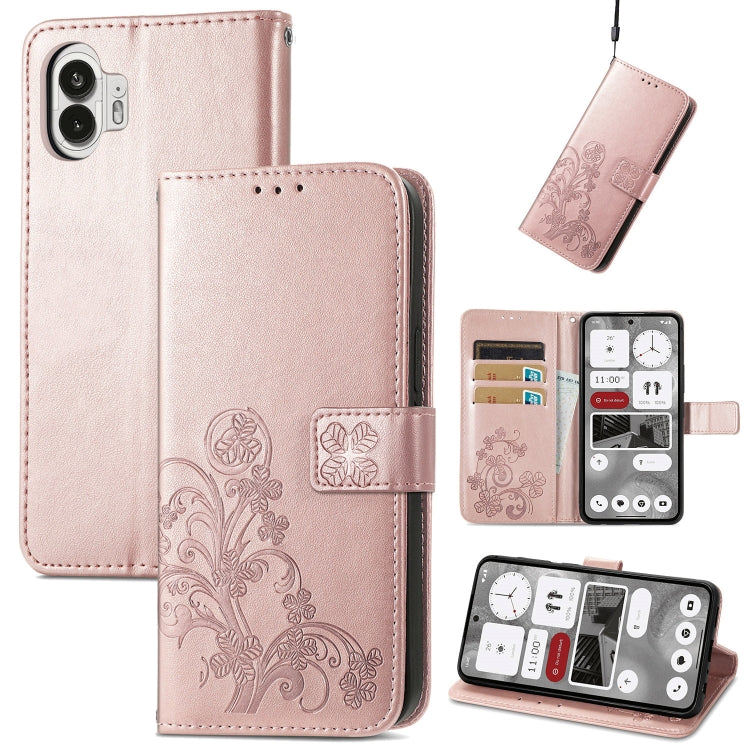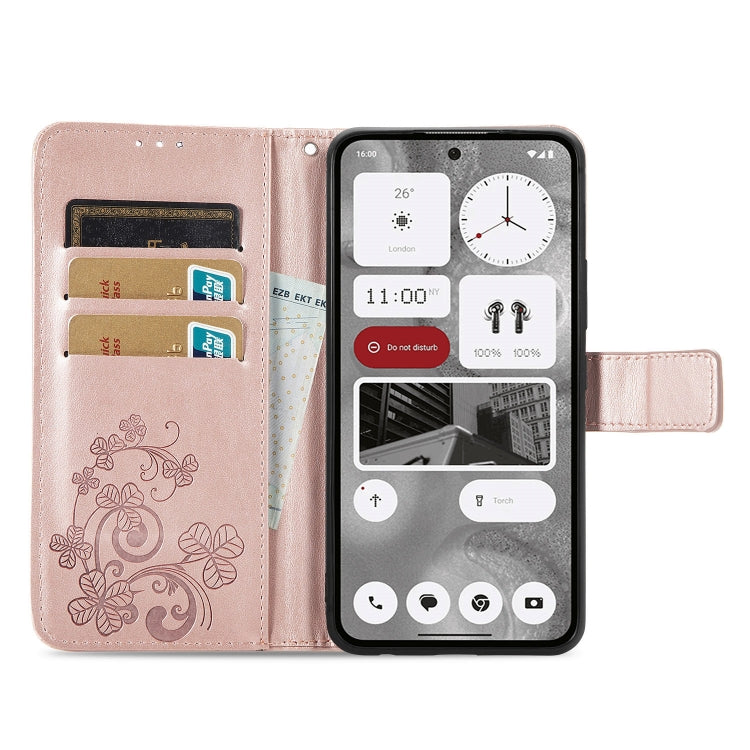 Funda para Nothing Phone 2 de Cuero con Hebilla en Relieve y Cierre de Cuatro Hojas (Oro Rosa)