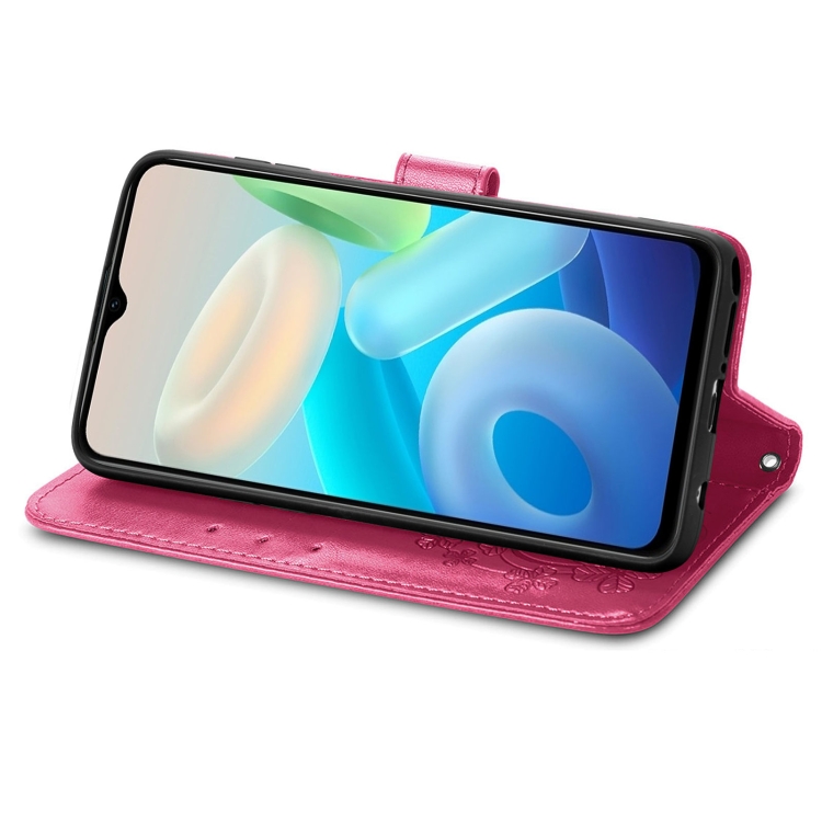For Vivo Y76S Funda de Cuero En Relieve de Cuatro Hojas (Magenta)