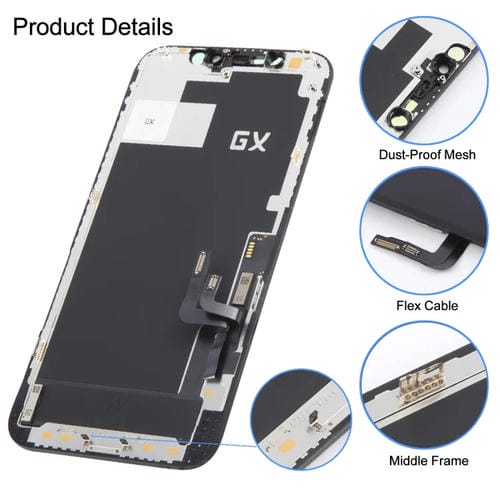 - 1x Pantalla Completa OLED GX iPhone 12 / 12 Pro con Ensamblaje Completo de Digitalizador