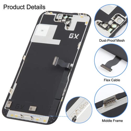 • 1x Pantalla Completa OLED GX rígida iPhone 14 Pro con Digitalizador Ensamblaje Completo