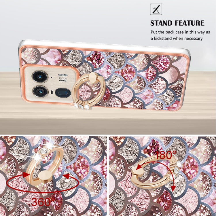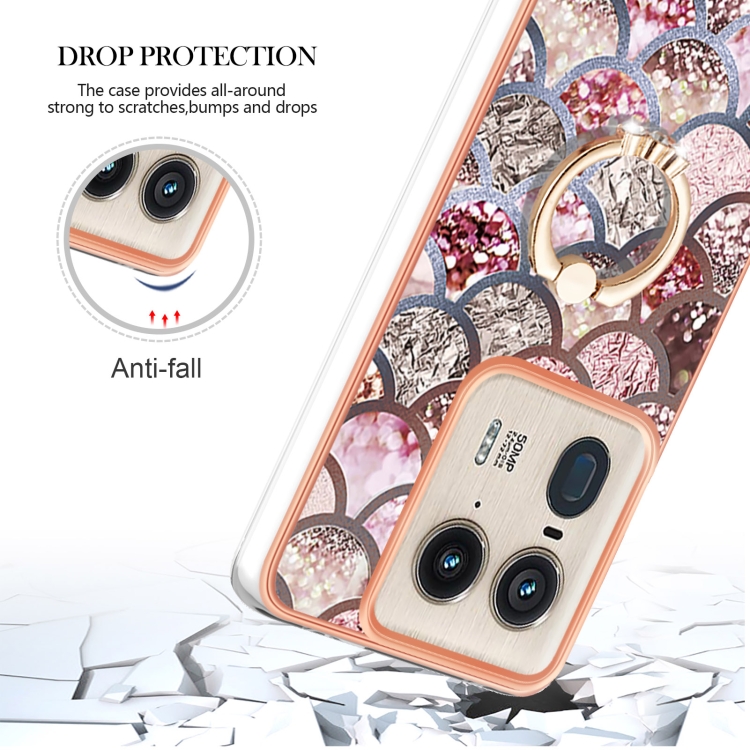 Funda TPU con Patrón Galvanoplastia y Soporte Anillo Diamantes para Motorola Edge 50 Ultra (Escamas Rosas)