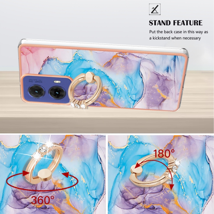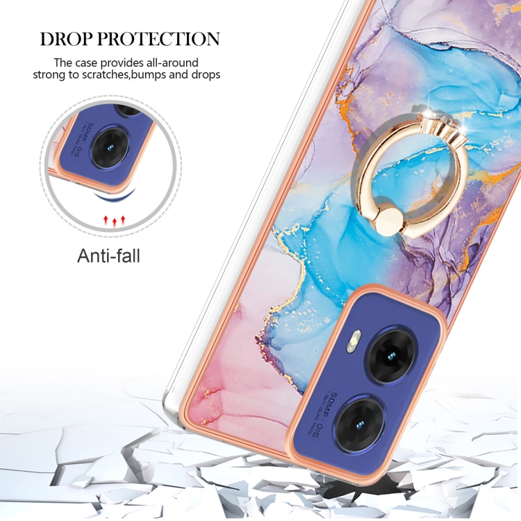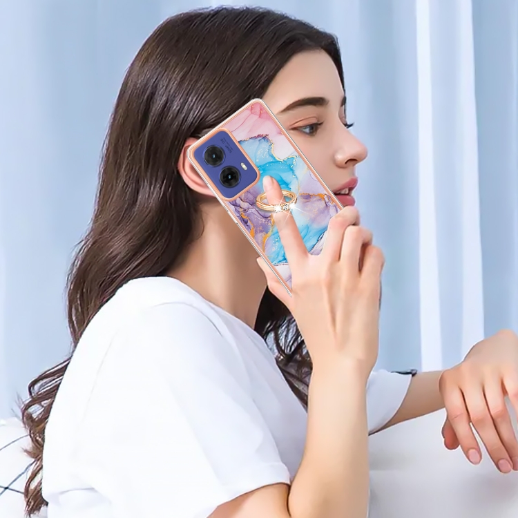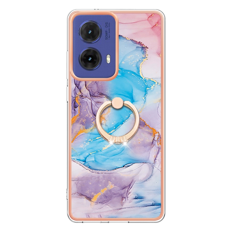 Funda a Prueba de Golpes TPU con Patrón Galvanoplastia y Soporte Anillo para Motorola Moto G85 (Mármol Azul Vía Láctea)